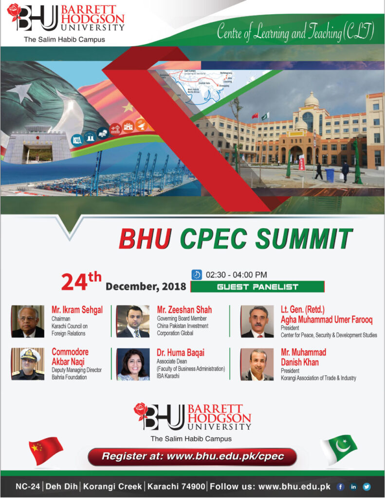NewsBHU CPEC Summit SadiqQasmi / December 18, 2018 Barrett Hodgson University is organizing the mega CLT seminar on “BHU CPEC Summit 2018” on Monday, 24 December, 2018. At this rare event, a