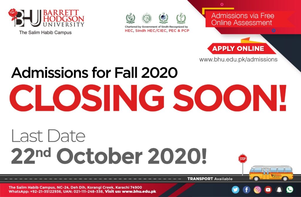 Admissions for Fall 2020 is Closing Soon!Last Date to apply is 22nd October 2020. Don’t miss this chance.Secure your academic future! Apply […]