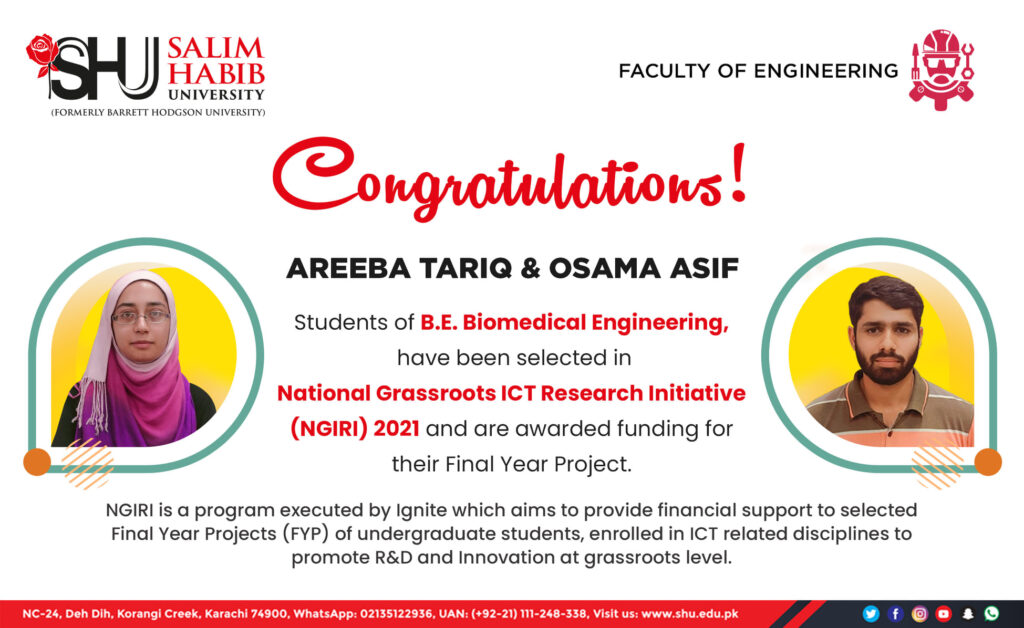 Congratulations Areeba Tariq & Osama Asif, our student of BE Biomedical engineering for being selected in NATIONAL Grassroots ICT Research […]