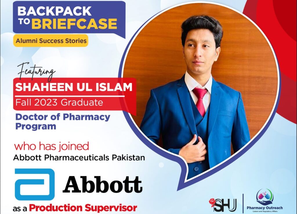 The Pharmacy Outreach, Liaison and Regulatory Affairs Office at Salim Habib University is proud to announce that Shaheen ul Islam,
