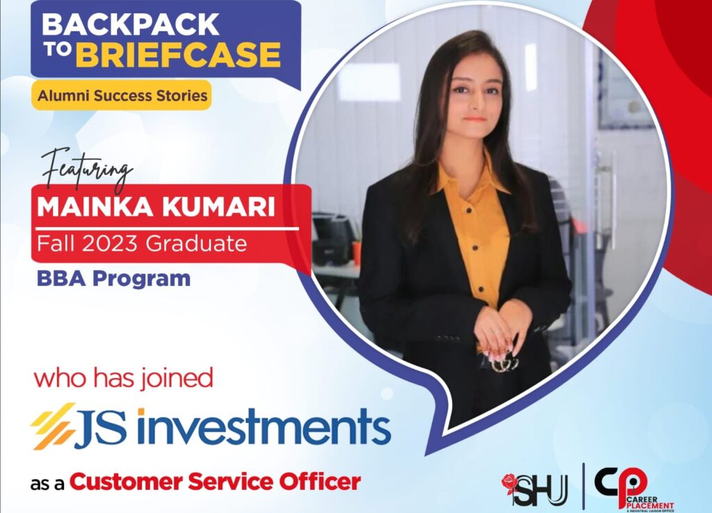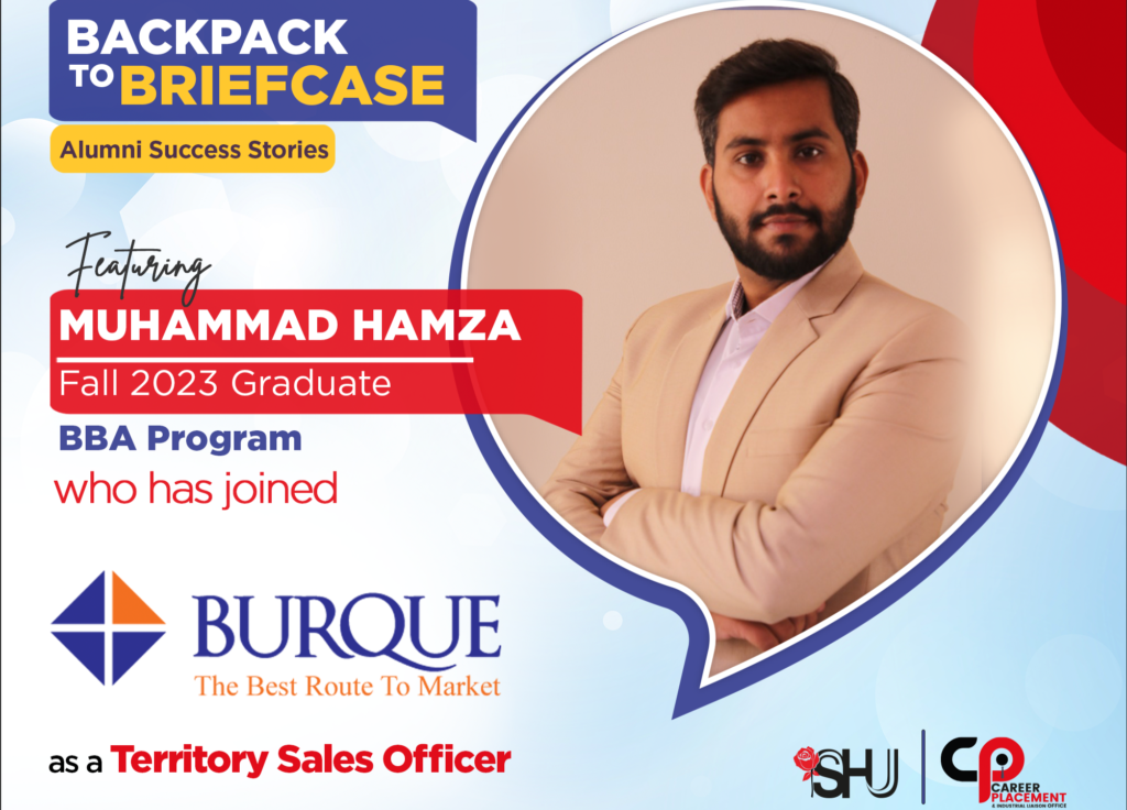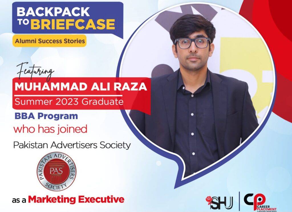 In today's edition of the Salim Habib University Career Placement & Industrial Liaison Office's Backpack to Briefcase Series of Alumni