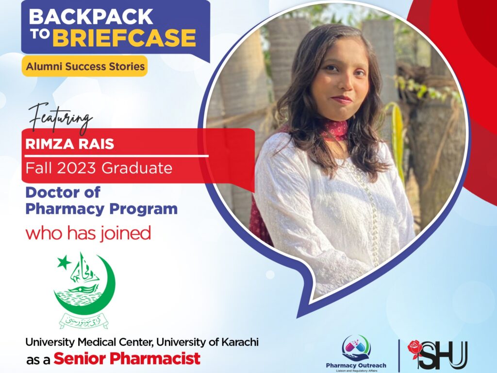 The Pharmacy Outreach, Liaison and Regulatory Affairs Office at Salim Habib University is proud to announce that Rimza Rais, a