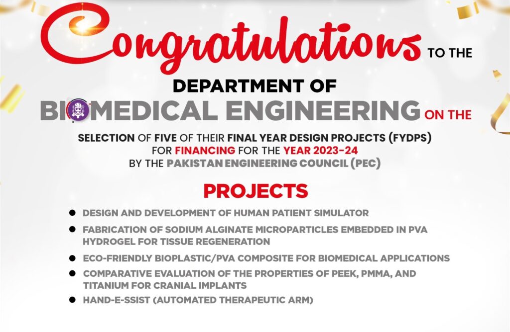 We take immense pride in announcing that five Final Year Design Projects (FYDPs) created by Salim Habib University’s bright Biomedical