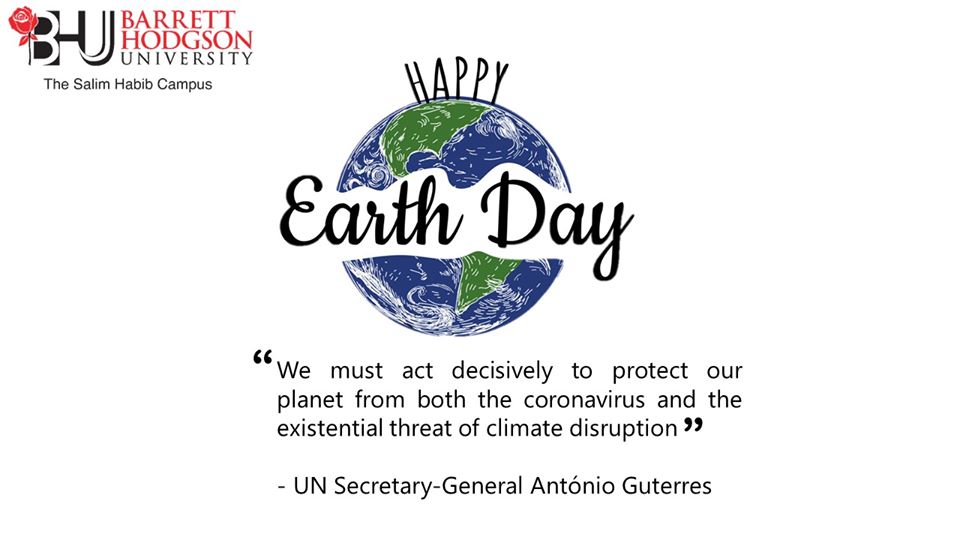 Every day is Earth Day; mother nature is showing us signs that it needs love and care. So let us take heed from all the alarming warnings and show our beloved planet some love and kindness. This is the only home we have, we need it more than it needs us.#BarrettHodgsonUniversity #BHU #EarthDay2020 #ClimateChange #COVID19 #StaySafe #StayHome