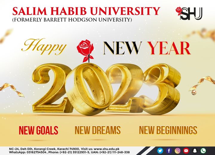 A very happy New Year to all of you from Salim Habib University!May this year bring you and your loved ones joy, bless you with health, and lead you on the path to success.Take the start of the new year as an opportunity to turn over a fresh leaf, and begin anew! Remember, the only thing stopping you from becoming everything you want to be is yourself.