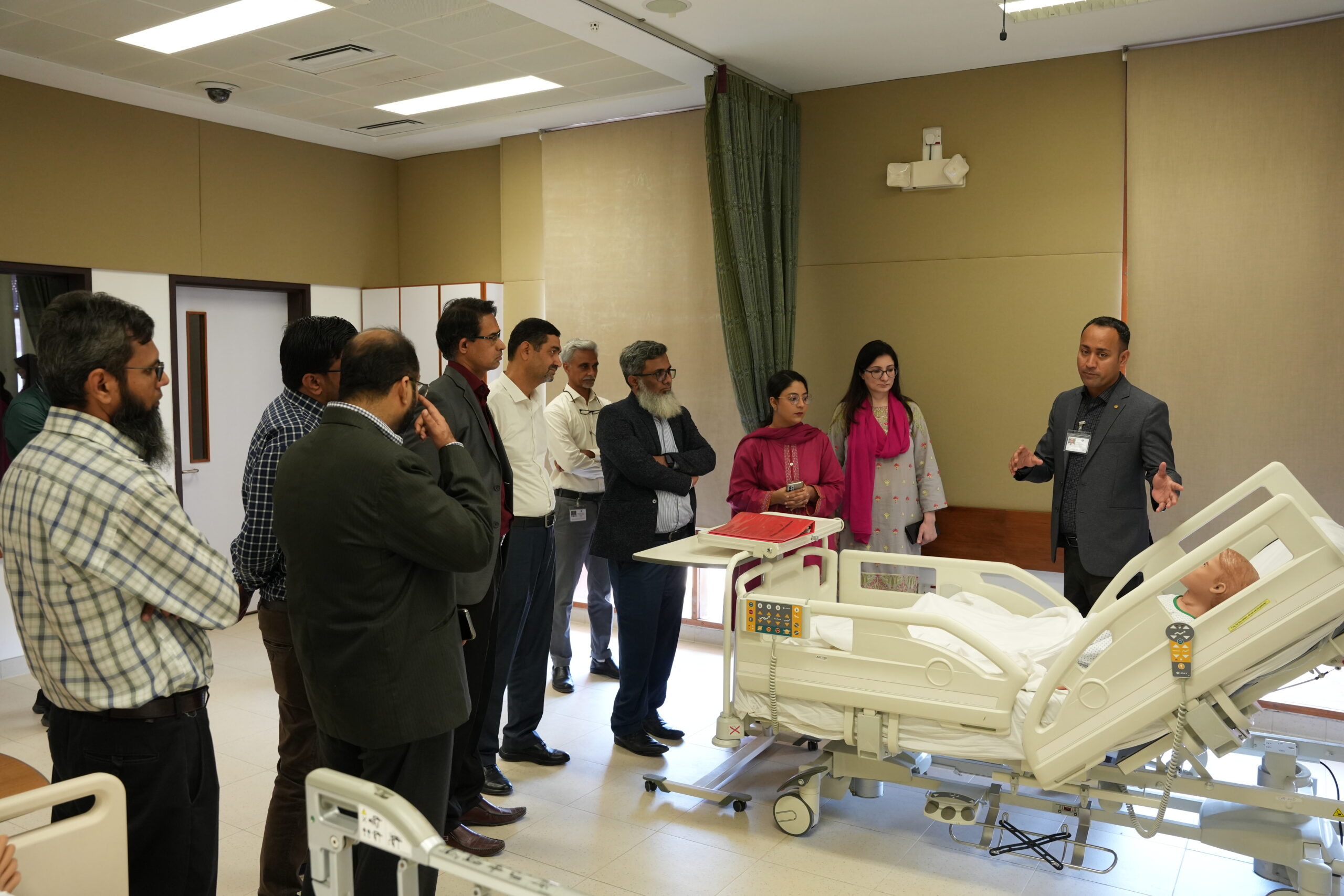 A delegation of Faculty members from Salim Habib University visited the Centre for Innovation in Medical Education, Aga Khan University (CIME-AKUH) for a meeting regarding future collaborations.The delegation included Prof. Dr. M. Zeeshan Ul Haq, Dean, Faculty of Engineering, Prof. Dr. Noor Kamil, Chairperson, DBMS, Faculty of Pharmacy, Prof. Dr. Sheeraz Arif, Chairperson, Department of Computer Science, Dr. Kashif Arif, Associate Professor Finance, Dr. Shaheena Anwar, Assistant Professor Biosciences, Mr. Sayem Hanif, Lecturer Biomedical Engineering, and Engr. Tooba Khan, Lecturer Biomedical Engineering.Engr. Gul Munir, Lecturer Biomedical Engineering, served as the coordinator bridging together CIME-AKUH and SHU.
