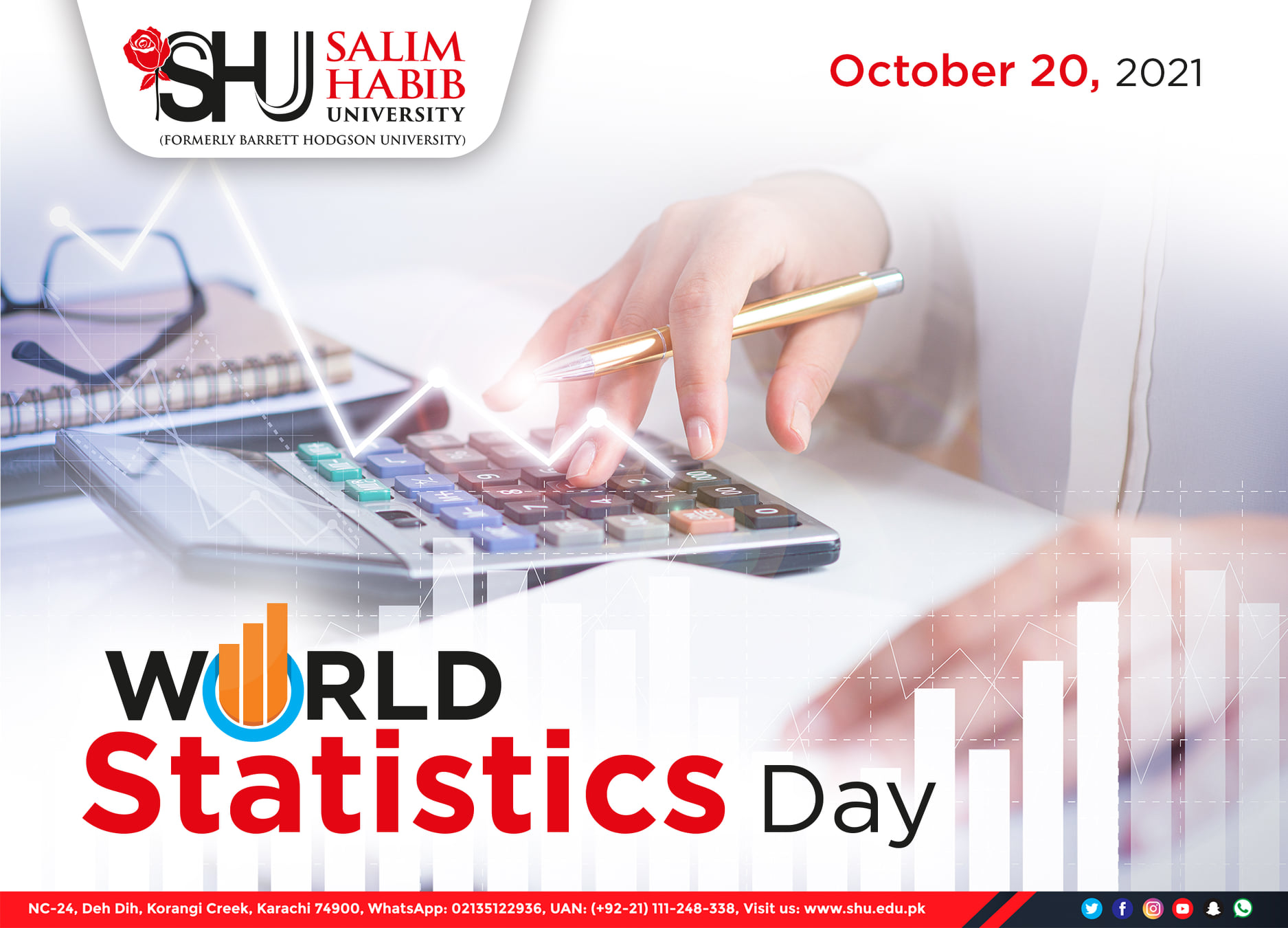 World Statistics Day is an international day to celebrate statistics, created by the United Nations Statistical Commission, it was first celebrated on 20 October 2010.We celebrate this day to recognize the power statistics gives the world to explore, analyze, and visualize data.Statistics are of vital importance because today we live in the information world and much of this information is used to collect data to determined effective results & make decisions based on these data for the betterment of humanity & environment.Let us all commemorate this day by educating all regarding the importance of statistics in our daily life.